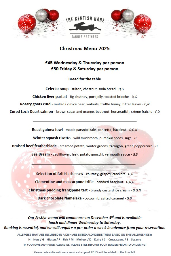 For all bookings wanting to eat from our festive menu we require a pre-order. When your booking is confirmed, we will send you the festive menu and a pre-order form.